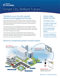 Start a conversation with a UScellular expert to learn how, together, we can grow your smart city. Contact mark.grushey@uscellular.com or visit Smart Connectivity.