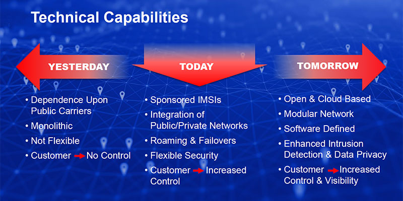 For example, today utility companies may be focused primarily on virtual private networks (VPN), but also may wish to implement better data security by removing the data plane but keeping the core and radio access network (RAN). Or utilities may want to take the next step and have their own core, moving beyond simply increased security to even greater levels of control. They may also want to own portions of their RAN, spectrum, towers, infrastructure and other assets in order to get a better return on those assets and better serve customers.
