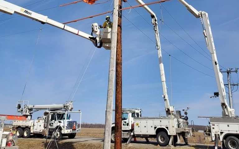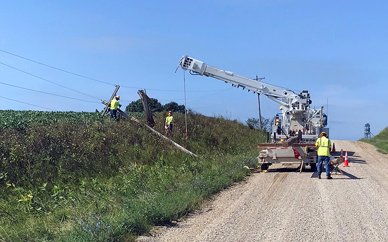 Repairing poles blown down in a wind storm